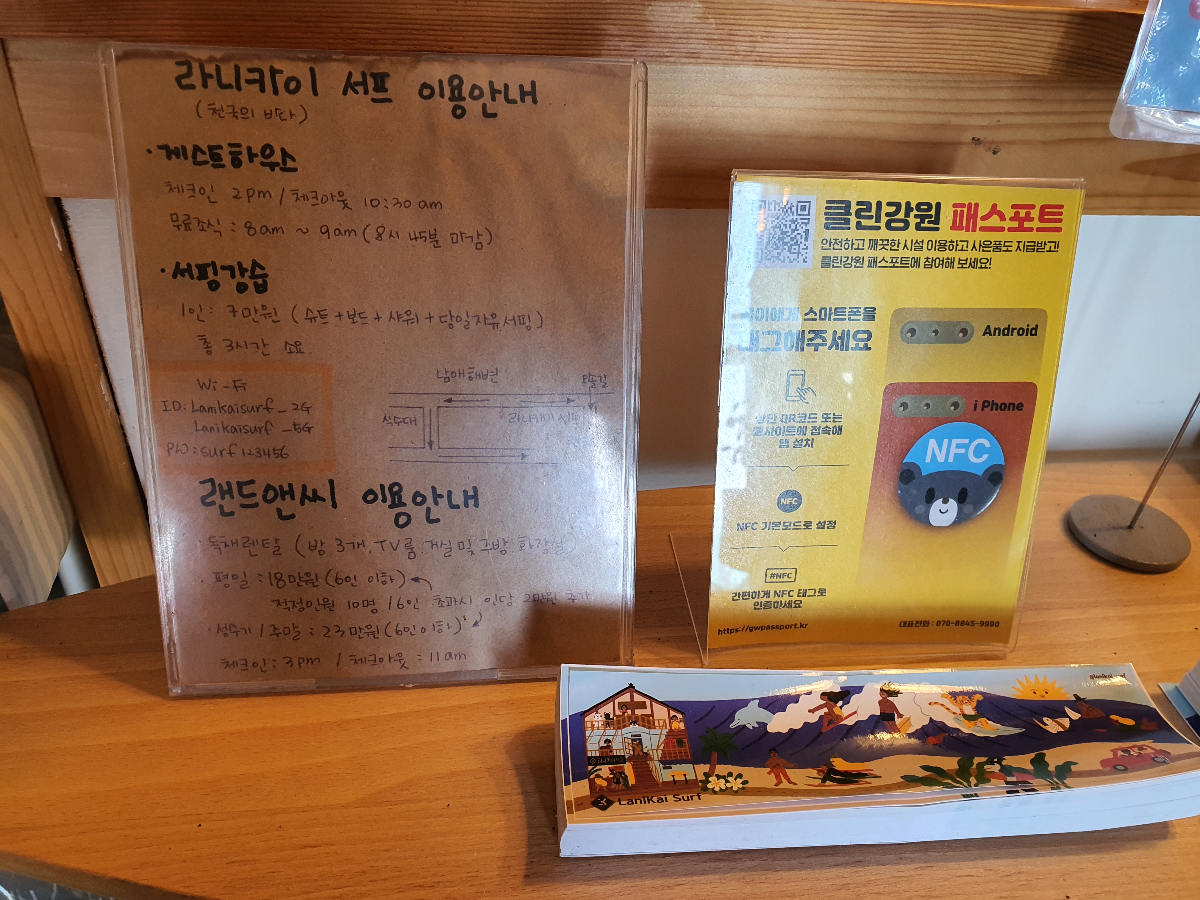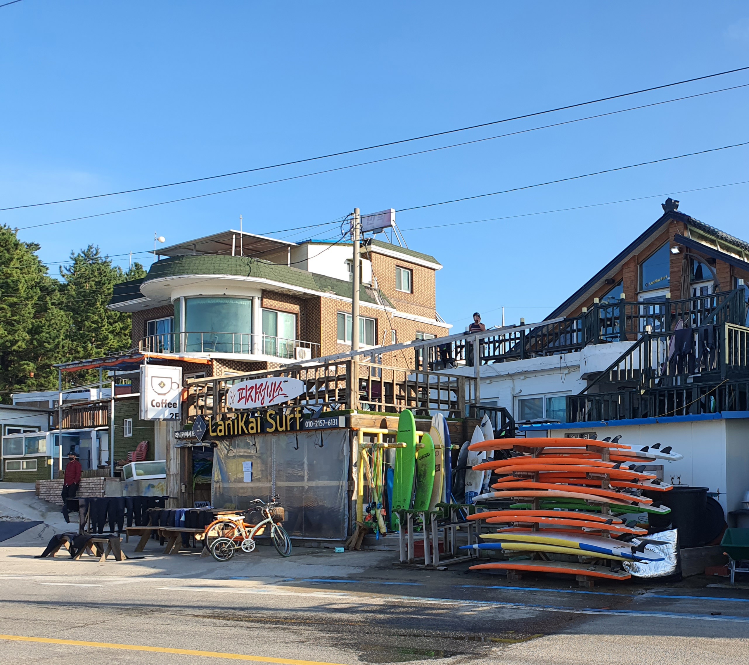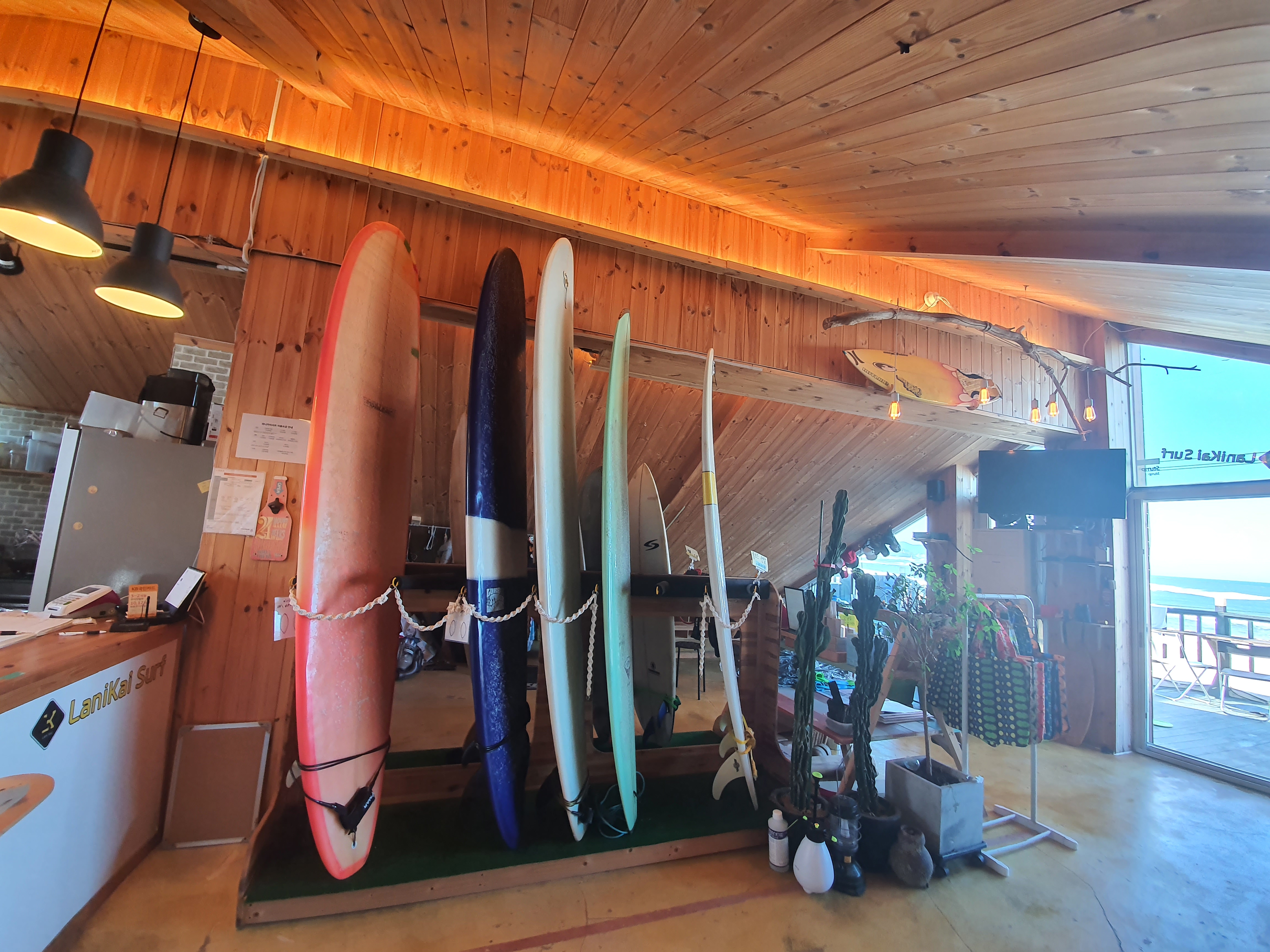 2층 서핑샵에서는 강습 예약, 서핑 슈트 및 보드 대여, 게스트하우스 예약 등 실질적으로 업무가 이루어지고 있어요.