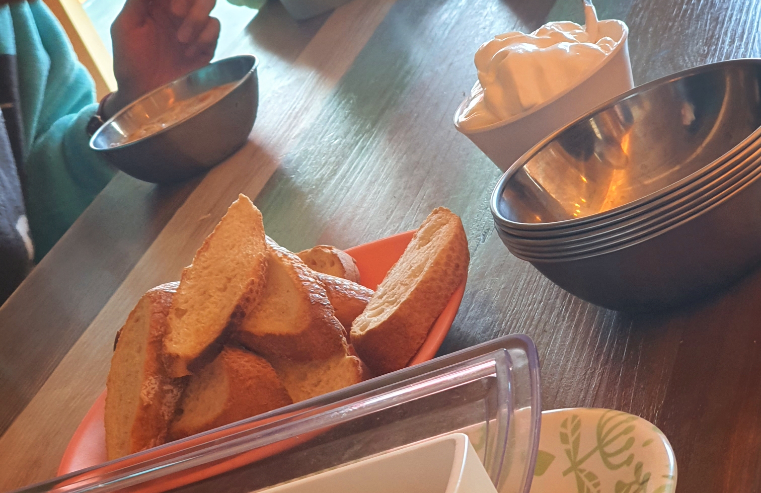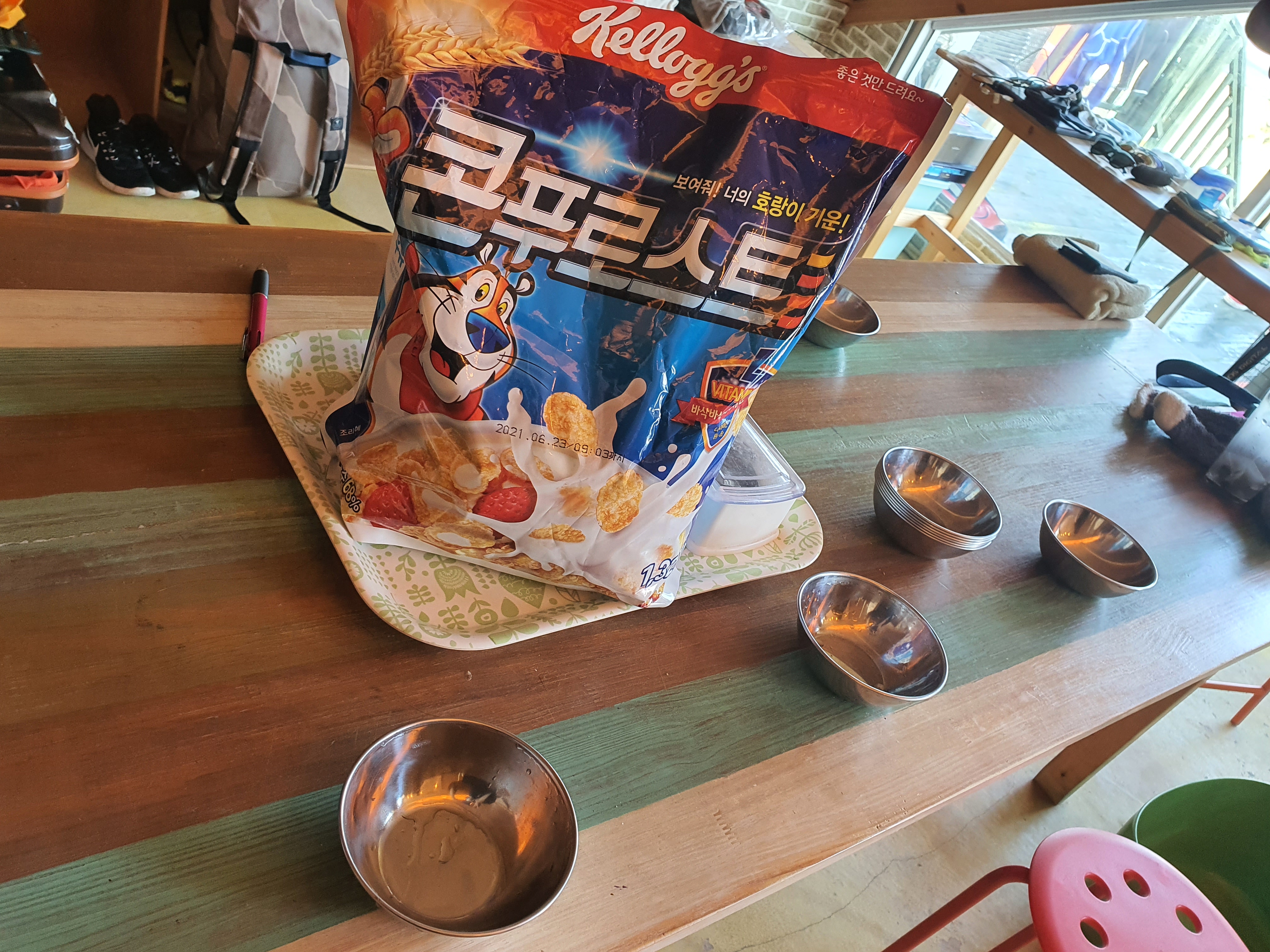 조식은 그때그때 다르지만, 간단한 시리얼과 빵 류를 제공합니다. 서핑 전 든든하게 배를 채우고 싶다면 1층의 피자 가게에서 식사하시는 것도 방법이에요!