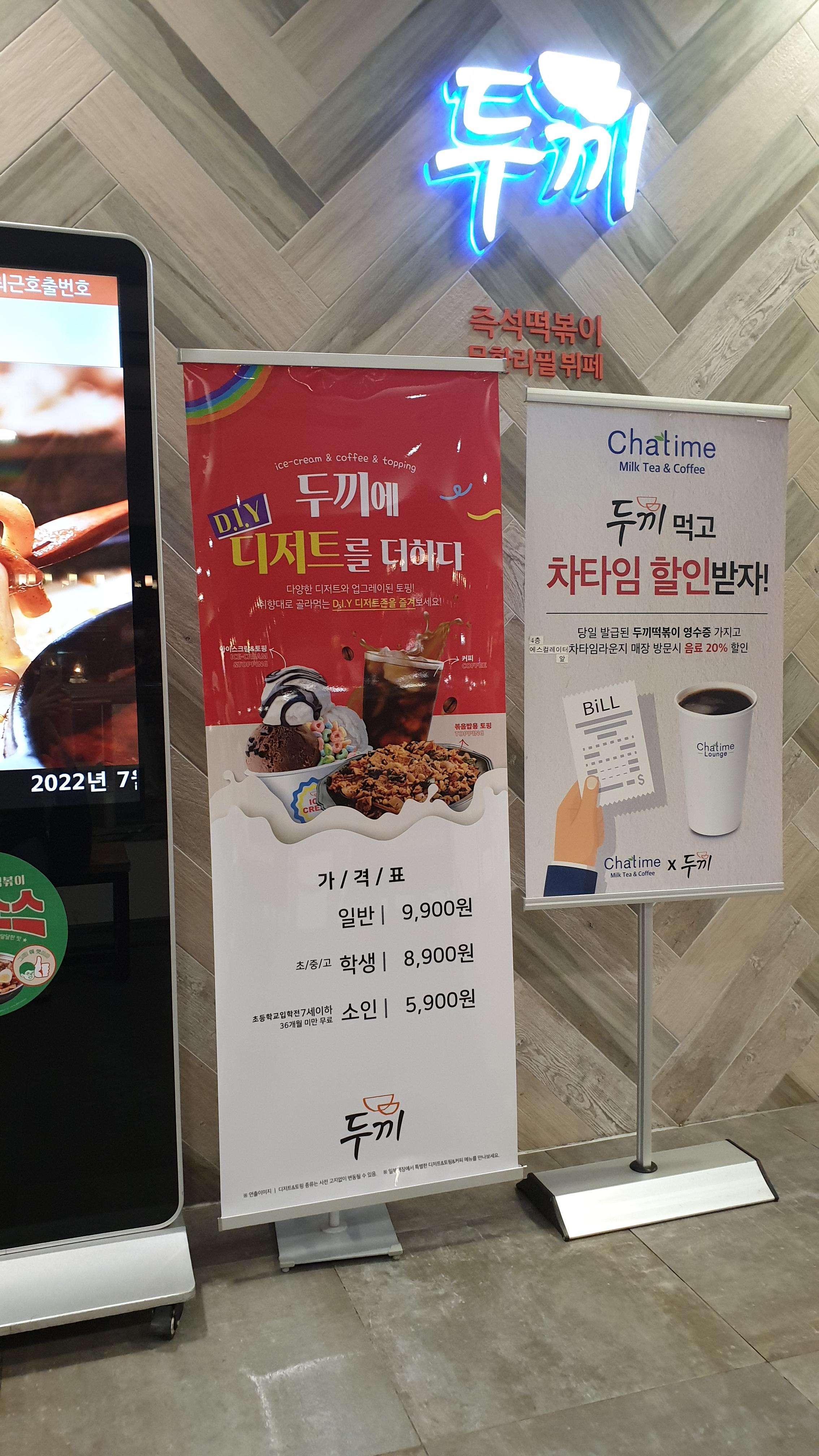 코로나로 모든 음식점의 영업시간을 단축할 때는 정말 한산했던 음식점들이 이제는 사람들로 넘치는 것을 보고 이제 코로나에서 벗어나고 싶다는 생각을 했습니다. 오늘은 이마트에 방문하기 위해 들렀다 점심을 두끼에서 먹었는데, 방문 입구 부터 붙어 있는 두끼 인상! 왜 안오르지 하고 있었는데 드디어 모든 가격의 인상 속에서 두끼도 합류를 했네요 그냥 인상은 미안한 것일까? 세가지가 추가된 메뉴 그리고 1000원 인상! 커피,아이스크림, 그리고 볶음밥에 들어갈 메뉴가 추가되었다는데, 어떤게 인상되었을까 궁금한 나는 커피도 마시고,아이스크림도 마시고,볶음밥은 생략! 떡볶이랑 튀김 먹으면 볶음밥은 생략하는 경우가 많지만 추가된 메뉴가 마음에 안든 탓도 있었죠!