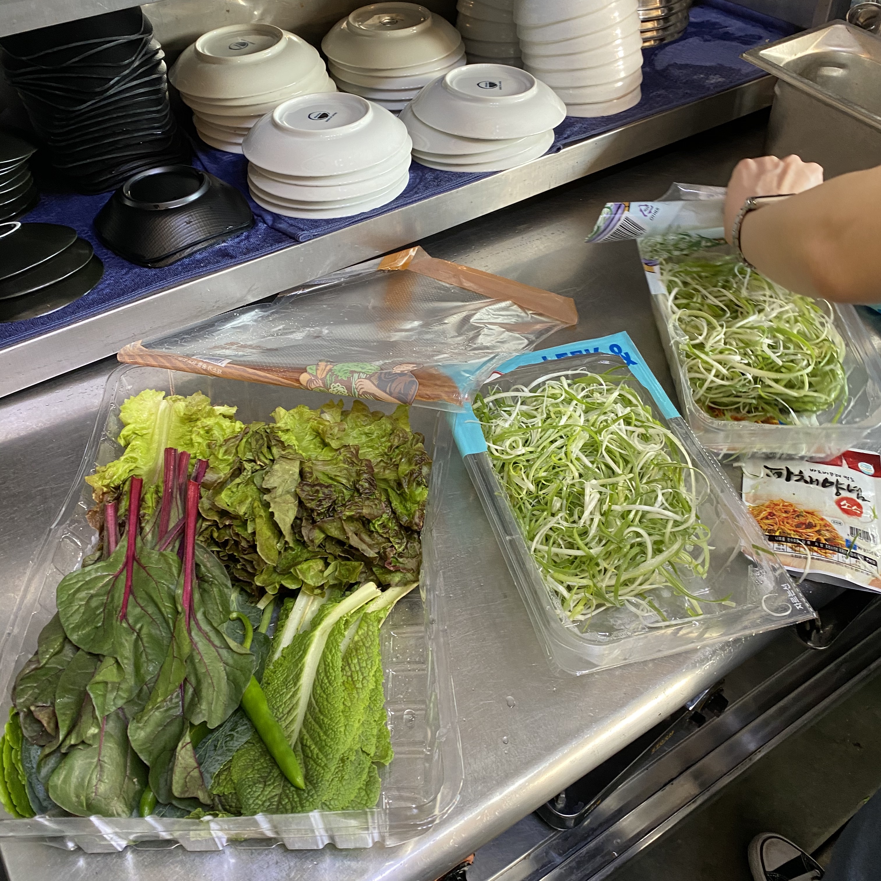 야채도 씻고~ 식기 세척하고~ 고기를 세팅해줍니다.