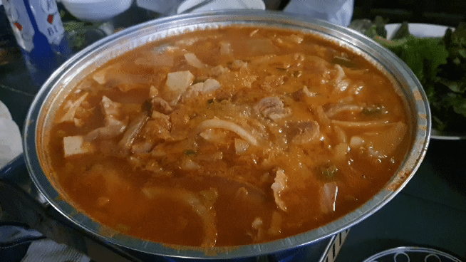 어느 정도 배가 찼다면 보글보글 김치찌개를 끓여줍니다.